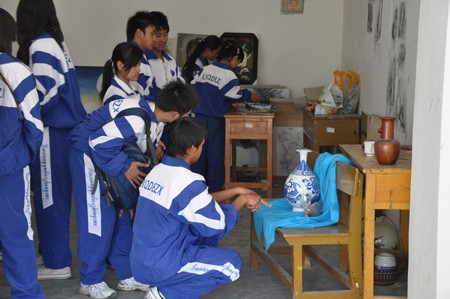 (党委宣传部文/张玉超 图/陈奇云)2009年10月30日下午,28名临翔区二中的同学在副校长柴学陟、音体美组长朱虹、美术老师王朝洲的带领下,参观了我校艺体系的画室。